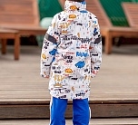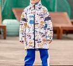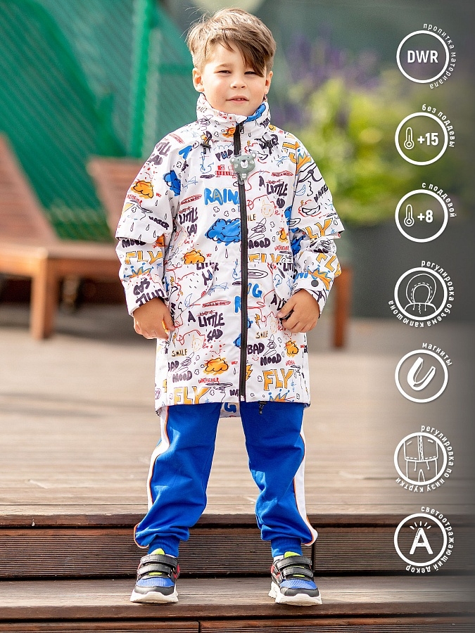Куртка-парка для мальчика в стиле кэжуал Дрим удлиненная в белой расцветке с принтом дневник. В этой ветровке ребенку будет комфортно теплой весной и осенью.Ткань защищает от ветра и дождя, сохраняя ощущение сухости и тепла. Центральная застежка на молнию, есть капюшон. Подклад комбинированный из флиса и таффеты.