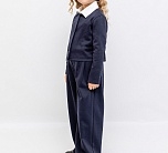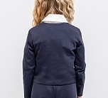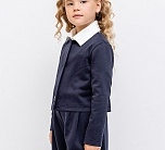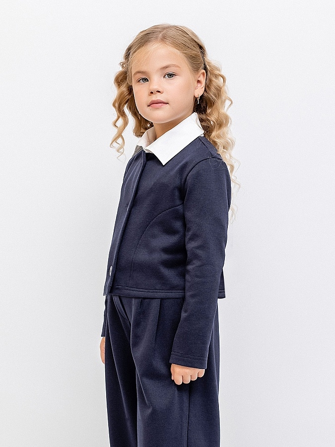 Укороченный классический жакет синего цвета на пуговицах представлен в базовых школьных цветах, что позволяет легко сочетать его с юбками, брюками и блузками. Имеет боковые карманы. Выполнен из плотного трикотажного полотна.