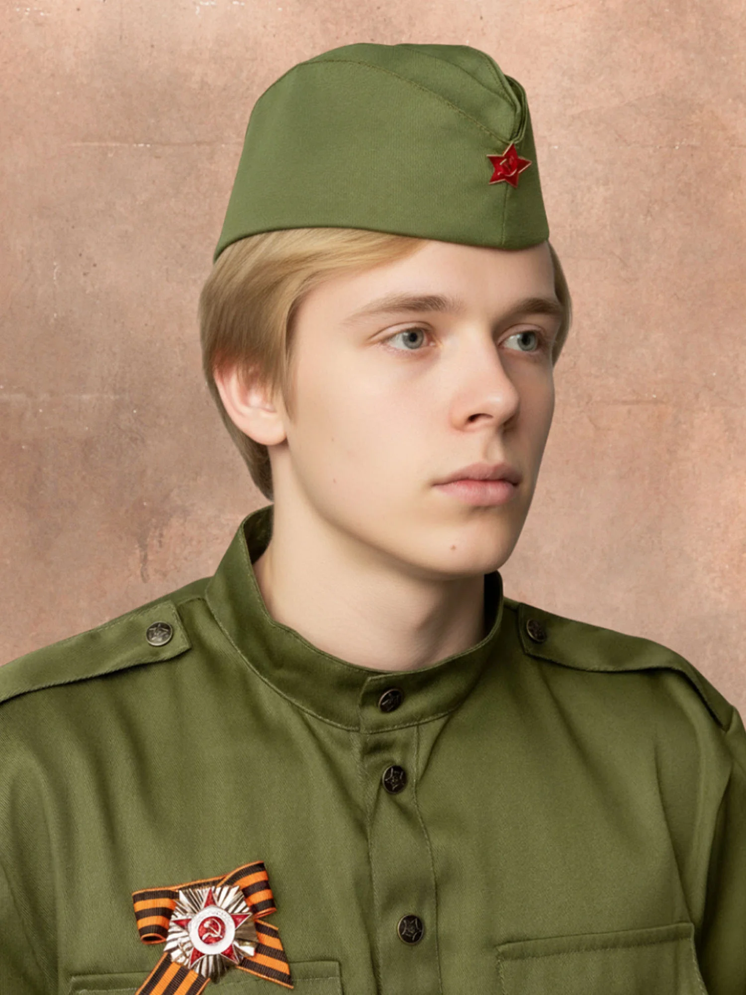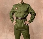 Костюм Солдата для взрослых на праздники 9 мая и 23 февраля – классический образ в советской стилистике. Красивая военная форма советского солдата подойдет для праздничных выступлений, шествия Бессмертного полка, а также поздравлений ветеранов. Комплект костюма Солдат состоит из гимнастерки, ремня, брюк и пилотки.