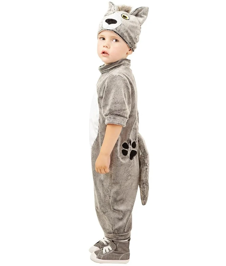 Этот милый образ известного персонажа из сказок позволит ребенку с интересом погрузиться в игру. В костюме Волка любой мальчик почувствует себя смелым и уверенным, сможет подурачиться и шутливо попугать своих друзей. Костюм из мягкого плюшевого материала хорошо смотрится на ребенке любой комплекции. Костюм состоит из комбинезона и шапки-маски в серой расцветке.