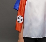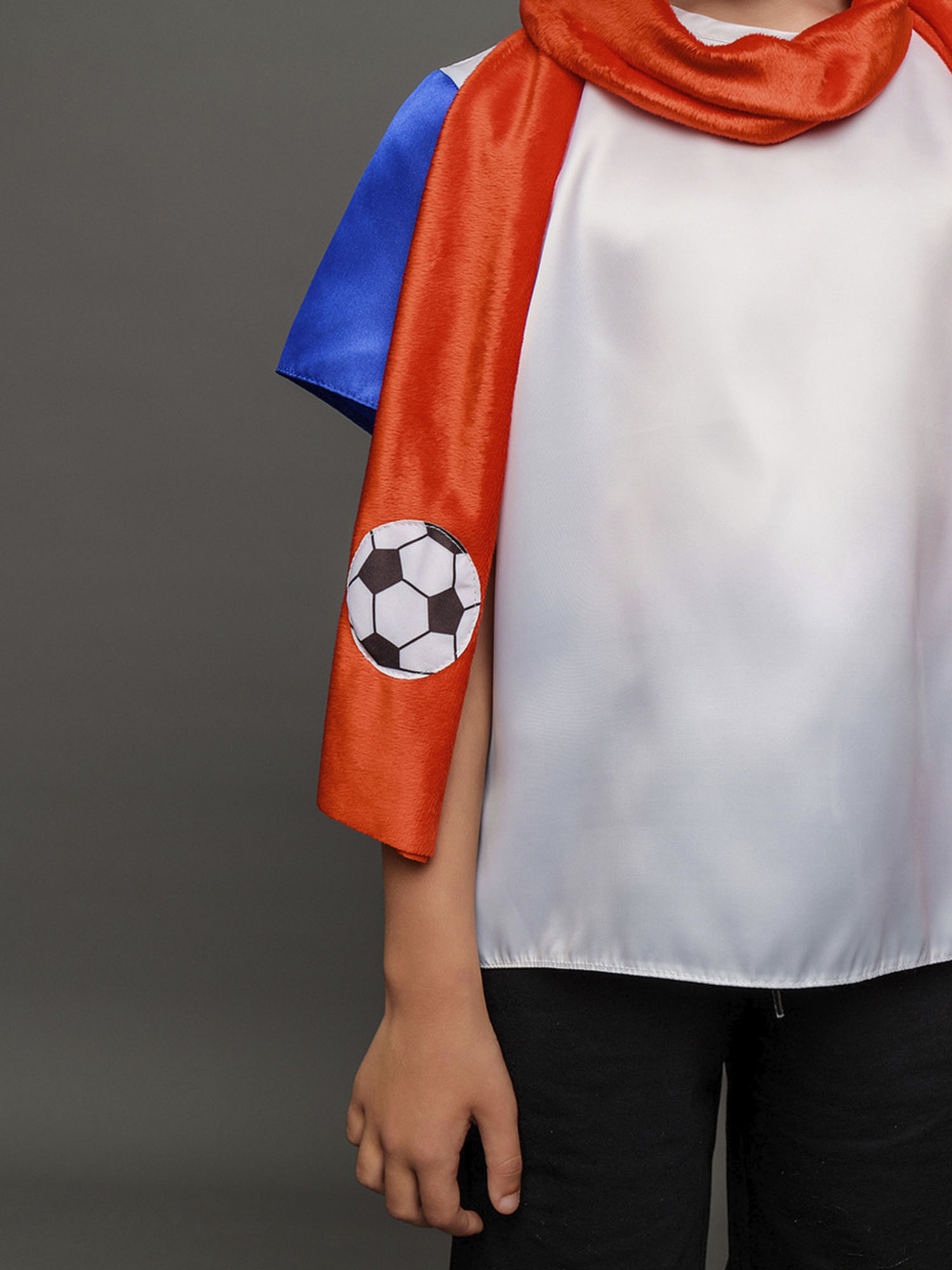 • Красный длинный шарф с изображением футбольных мячей на концах