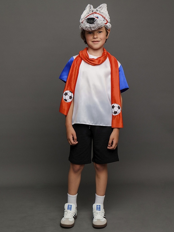 Костюм Волчонок подойдет для костюмированных праздников, представлений и посещения спортивных мероприятий. Он легок и удобен в носке, ребенок сможет находиться в костюме длительное время, не чувствуя дискомфорта. В комплекте образа Волчонок вы найдете: футболку, шарф, шапку и «очки» на резинке.