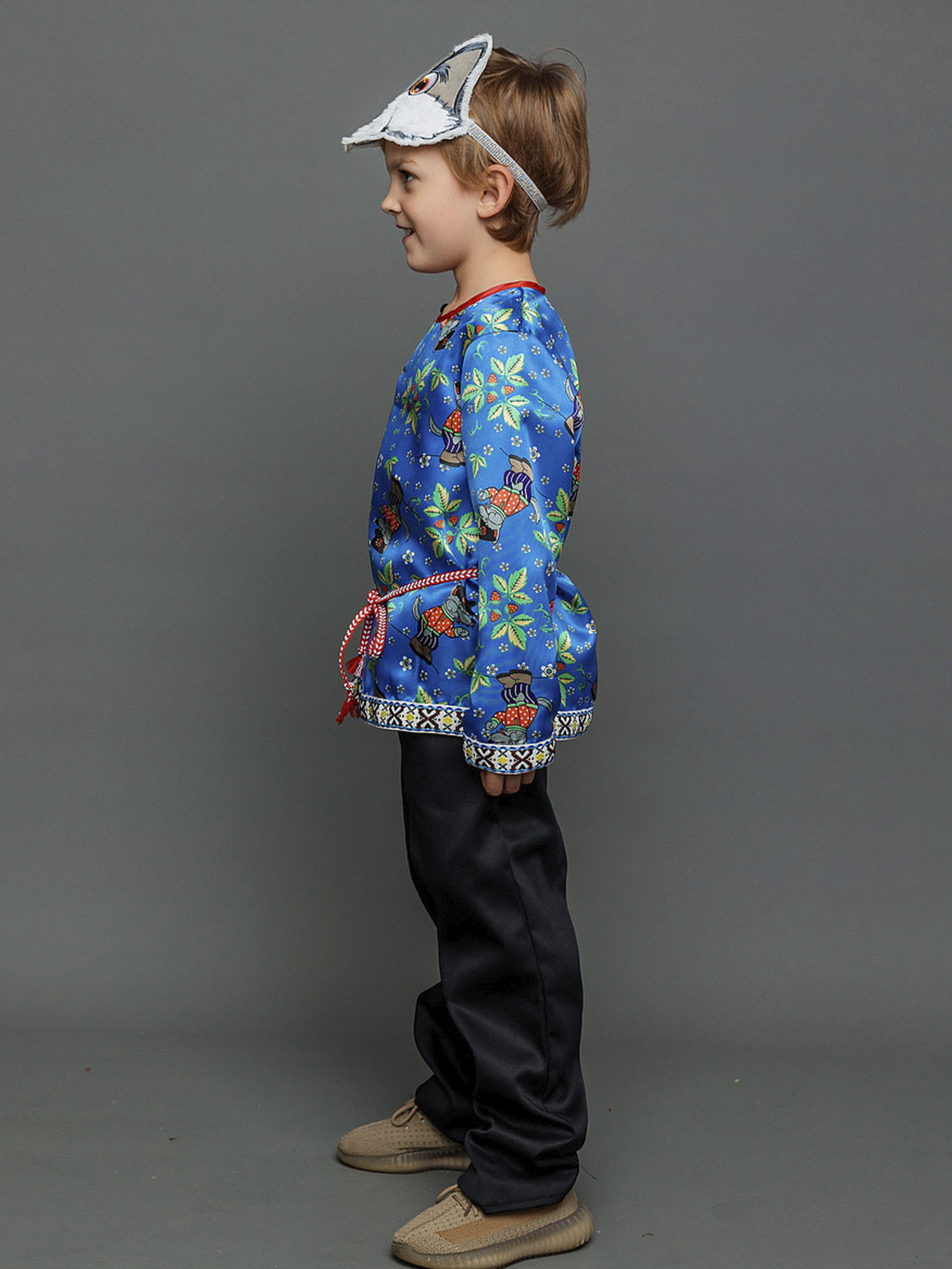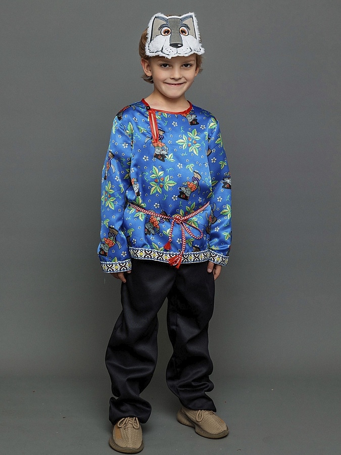 Серый волк - один из героев русских народных сказок, обычно злой и страшный, но в конце подобревший и раскаявшийся. Именно этот образ чаще всего можно увидеть на детских утренниках и в спектаклях. В комплектацию костюма Волка входят - рубаха, брючки, маска и поясок.