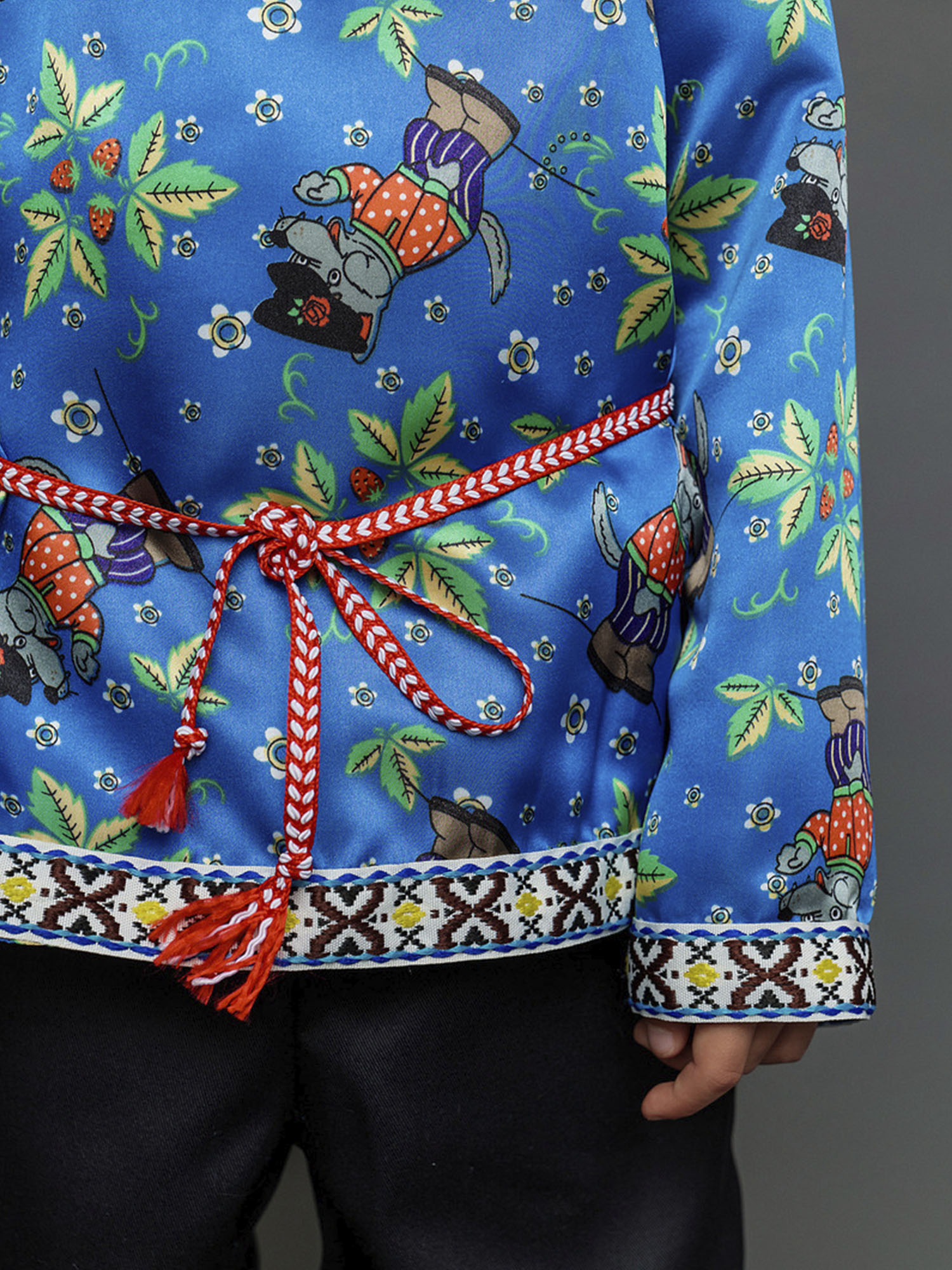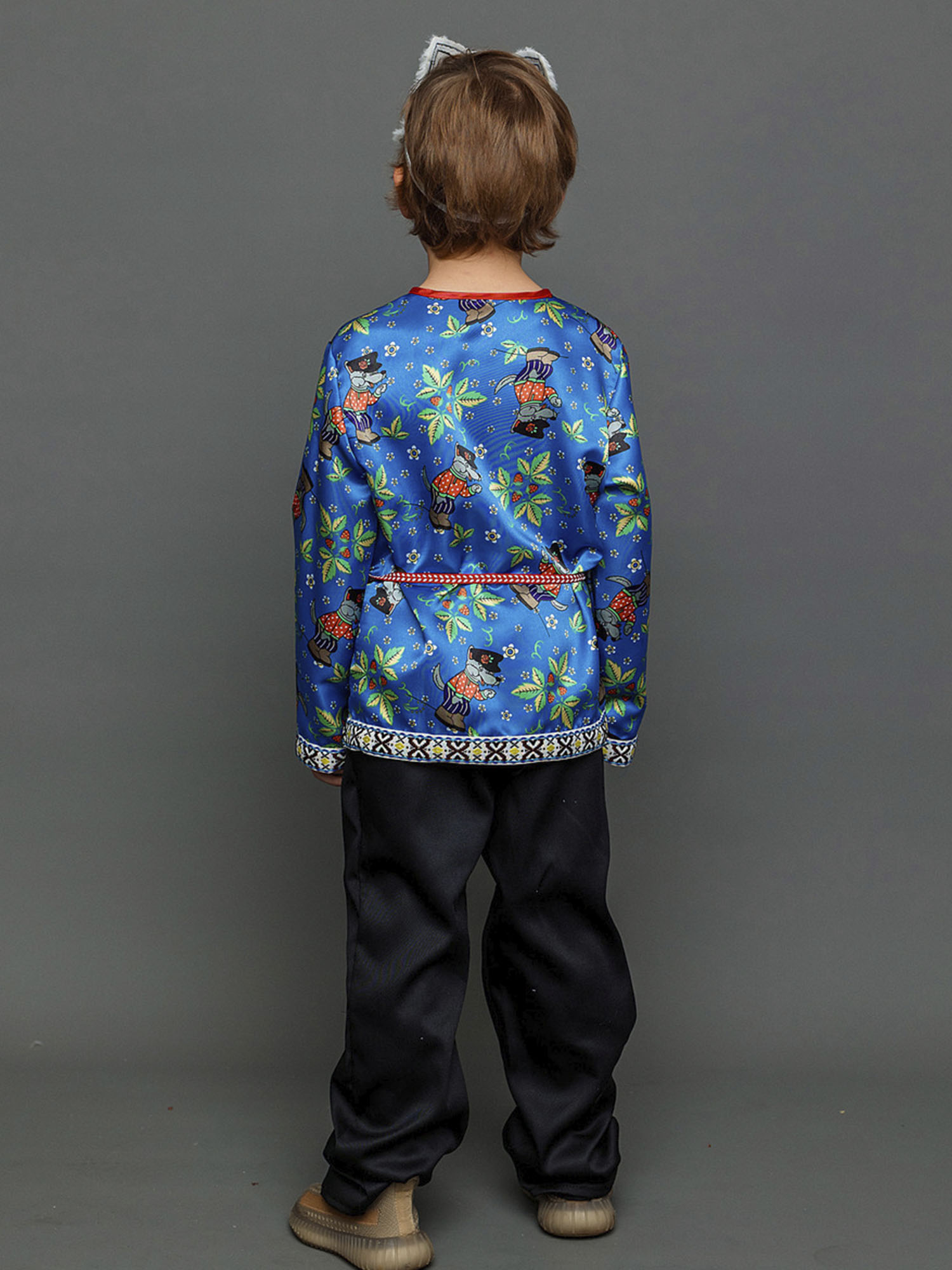 • Рубаха с принтом в виде волков и народным орнаментом