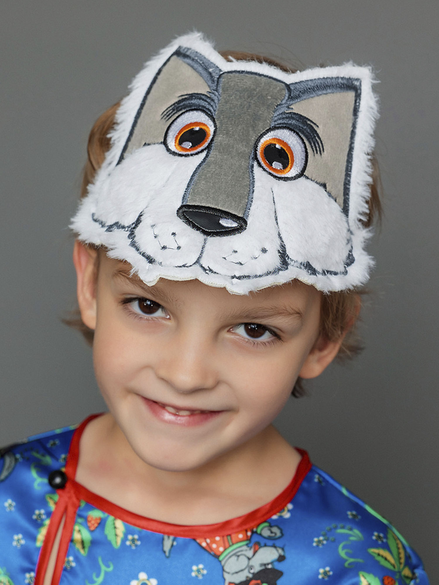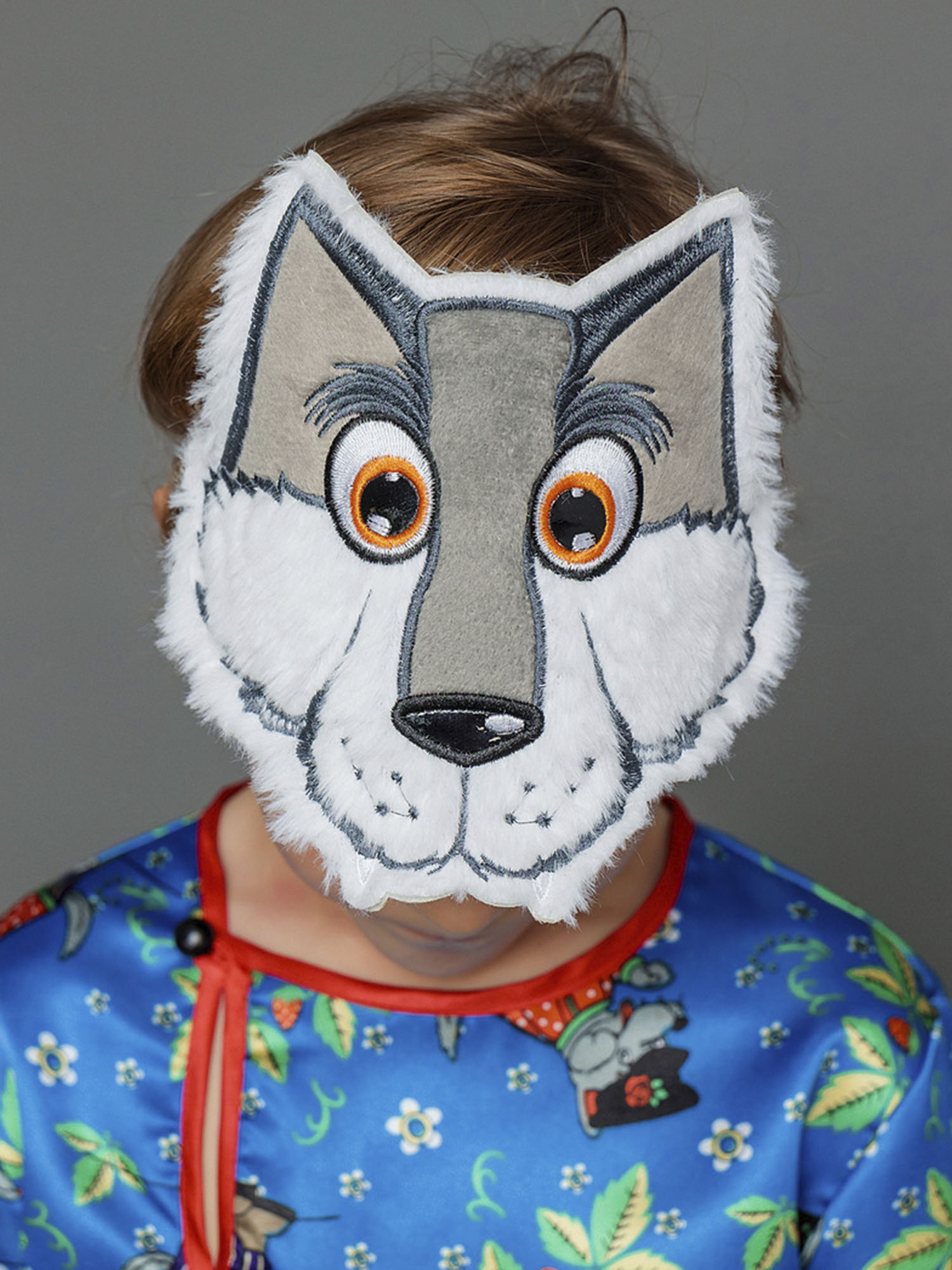 • Волчья маска надевается на голову с помощью эластичной резинки