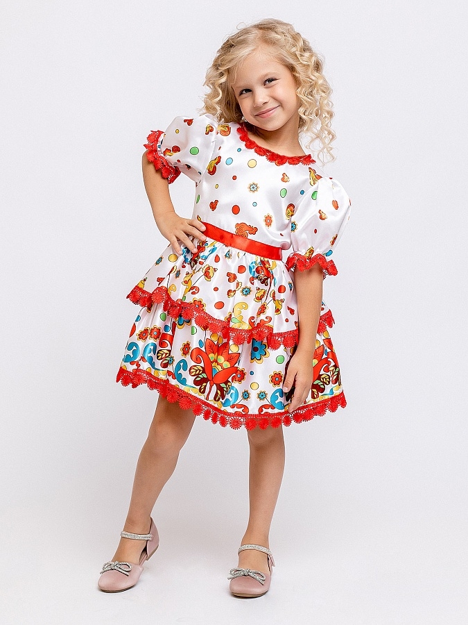 Карнавальный костюм Лето Красное для девочки 3-6 лет. Платье с коротким рукавом и народным узором. Яркий детский карнавальный костюм Лета для девочек можно купить в интернет-магазине batik. Он подойдет для детского сада или школы.