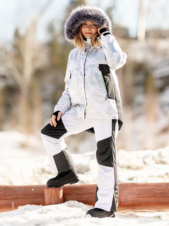 Спортивный и яркий комплект для девочек на зиму Британи привлекает внимание цветовым сочетанием, фактурой и декором. Куртка на молнии, кокетки и отрезные детали по переду и спинке, на полочке расположены прорезные карманы на молнии, фигурный низ, стежка, на рукавах резинка и паты. Капюшон на утяжках, кнопки для опушки по внутренней части, пата на капюшоне, куртка декорирована нашивками и термотрансферами. Брюки с усиленными коленями и низом, имеют кокетку по задней части и два накладных кармана с клапанами, спереди по бокам карманы, закрытые планками, регулируются эластичными лямками, на задней части расположены боковые вставки, декорированы термотрансферами.