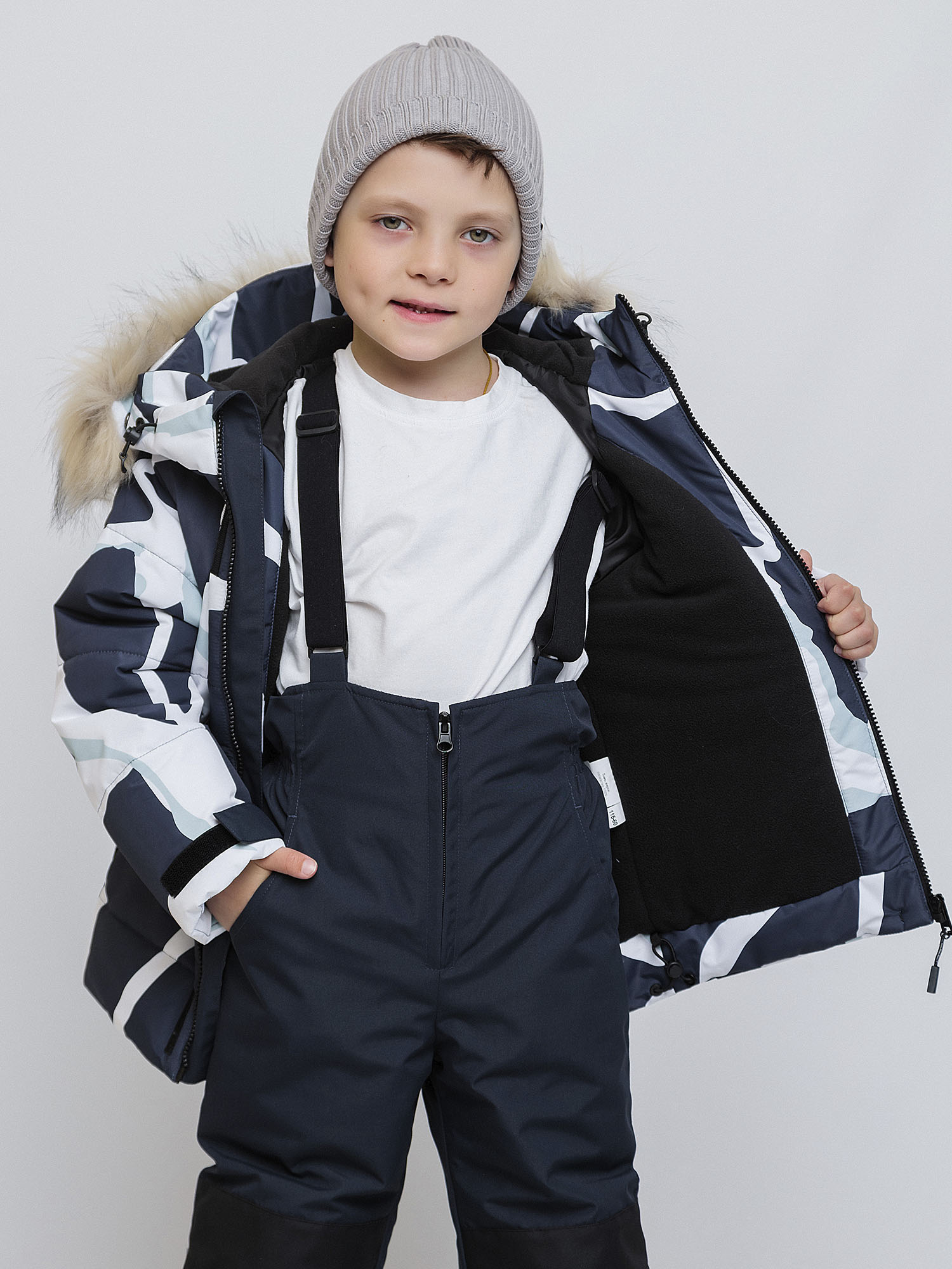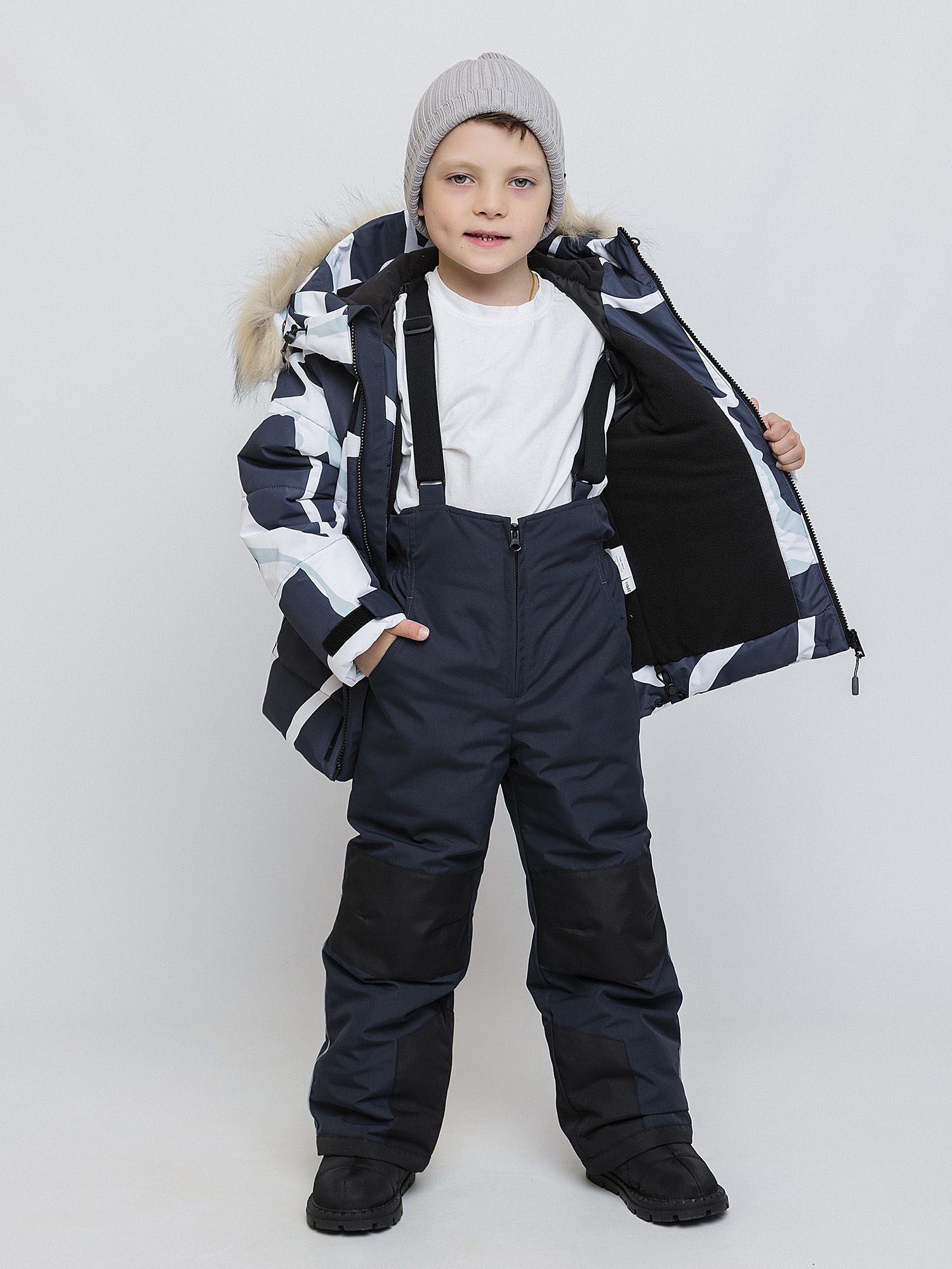 Комплект для мальчика "Грейг" в насыщенном синем цвете с принтом — это стильное решение для активных зимних прогулок. Яркий синий цвет создает динамичный образ, а продуманная конструкция обеспечивает комфорт в любую погоду.
