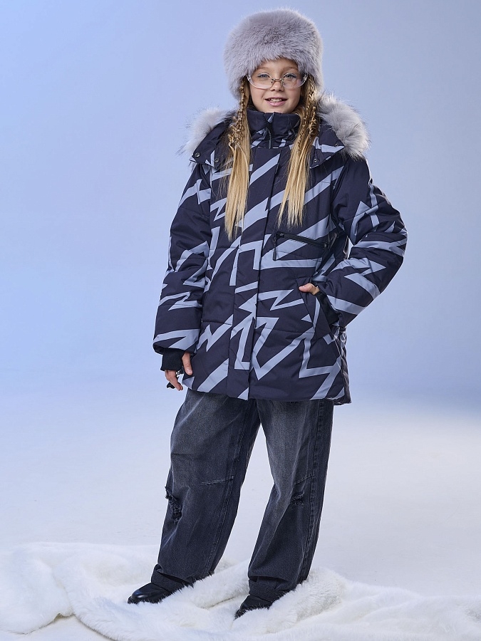 Куртка для девочки "Магнолия" в классическом чёрном цвете — это стильное и функциональное решение для холодной зимы. Удлинённый оверсайз силуэт с горизонтальной отстрочкой создаёт современный образ, а технологичные детали обеспечивают максимальный комфорт.