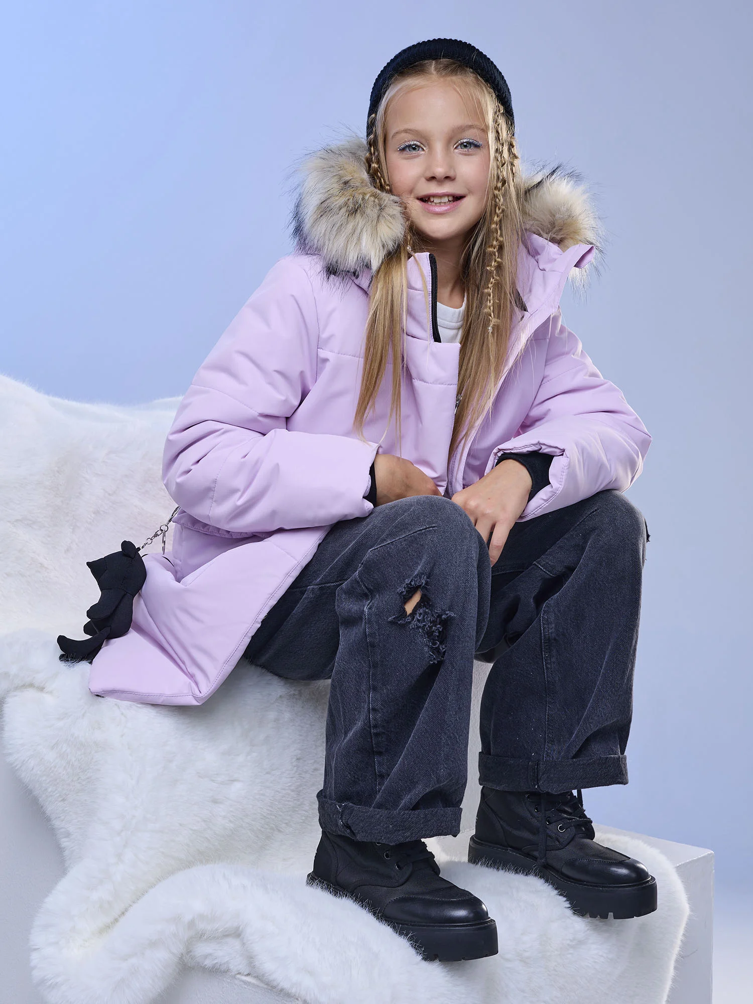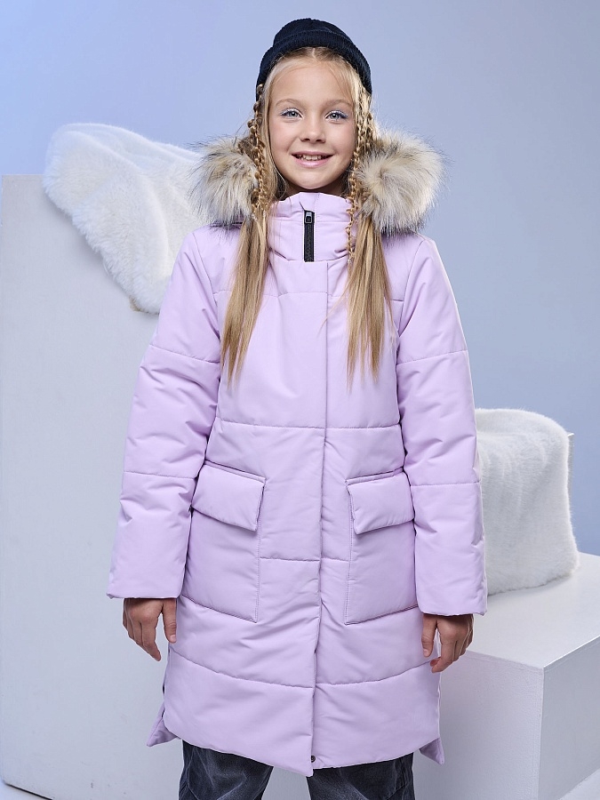 Пальто для девочки "Даниэль" в нежном оттенке "лепесток орхидеи" — это романтичный образ для юной модницы. Тонкий розово-сиреневый подтон создаёт утончённый зимний look, сохраняя все функциональные преимущества.