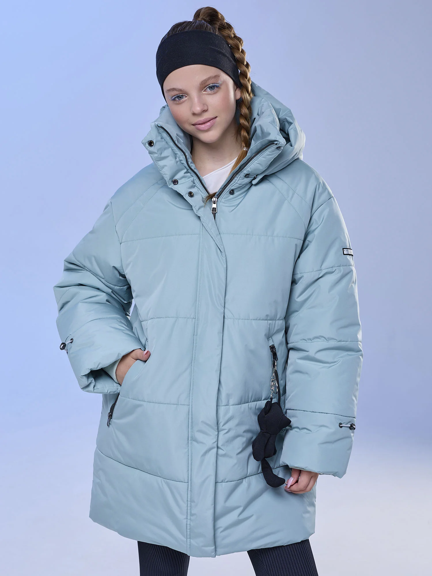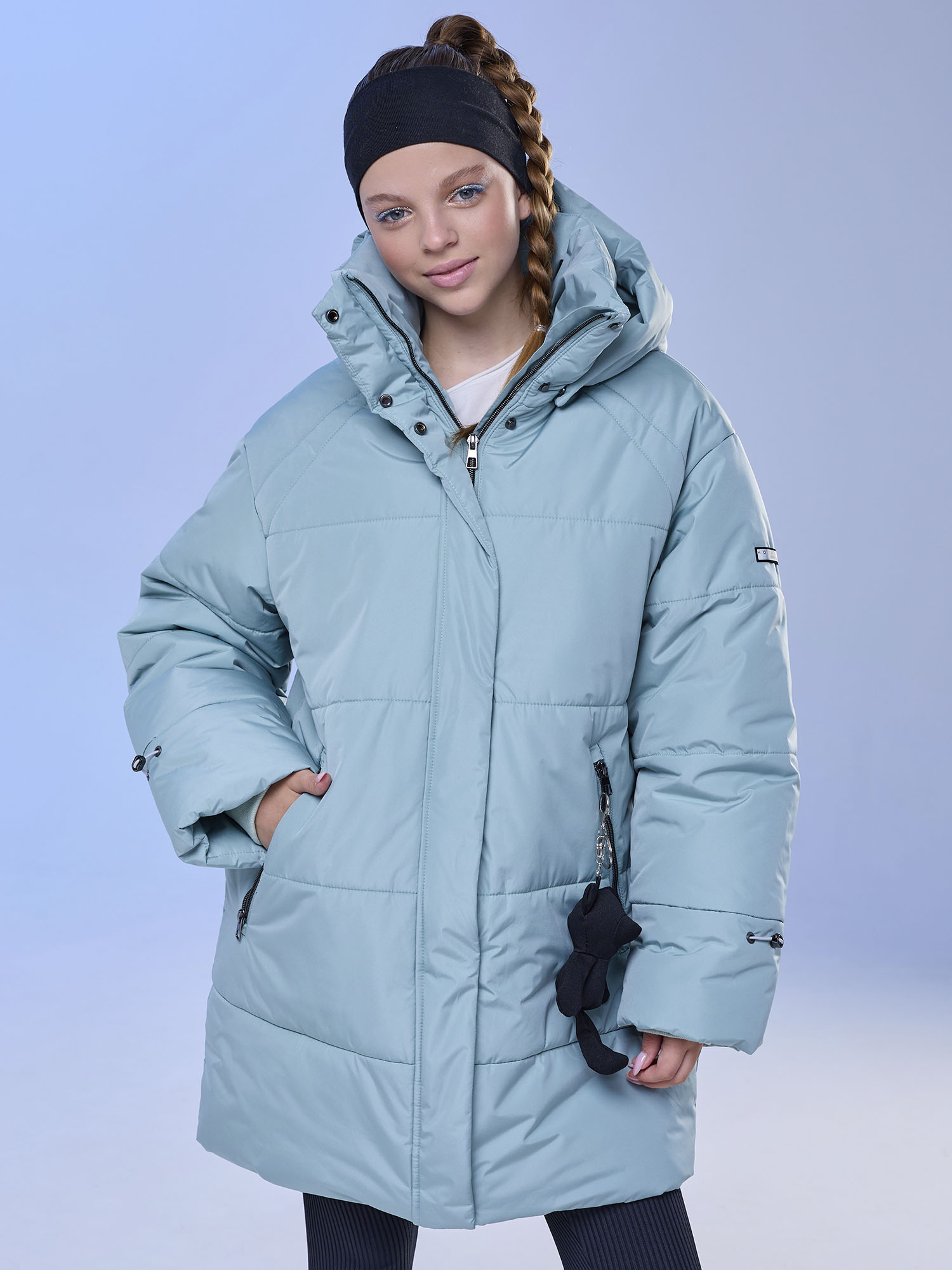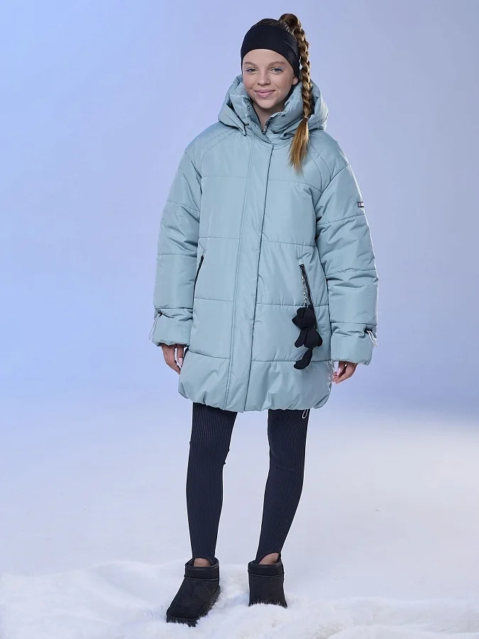 Полупальто для девочки "Тула" в свежем мятном оттенке — это яркий акцент зимнего гардероба. Нежный холодный зелёный цвет создаёт стильный образ, а свободный силуэт обеспечивает комфорт в повседневной носке.
